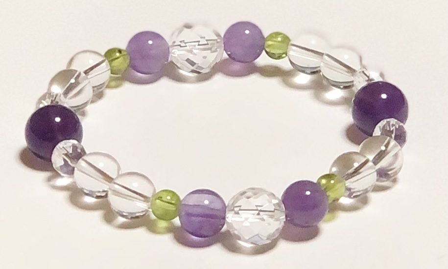 それに良縁を結び、過去のトラウマを癒すラベンダーアメジストやペリドットを配しました。