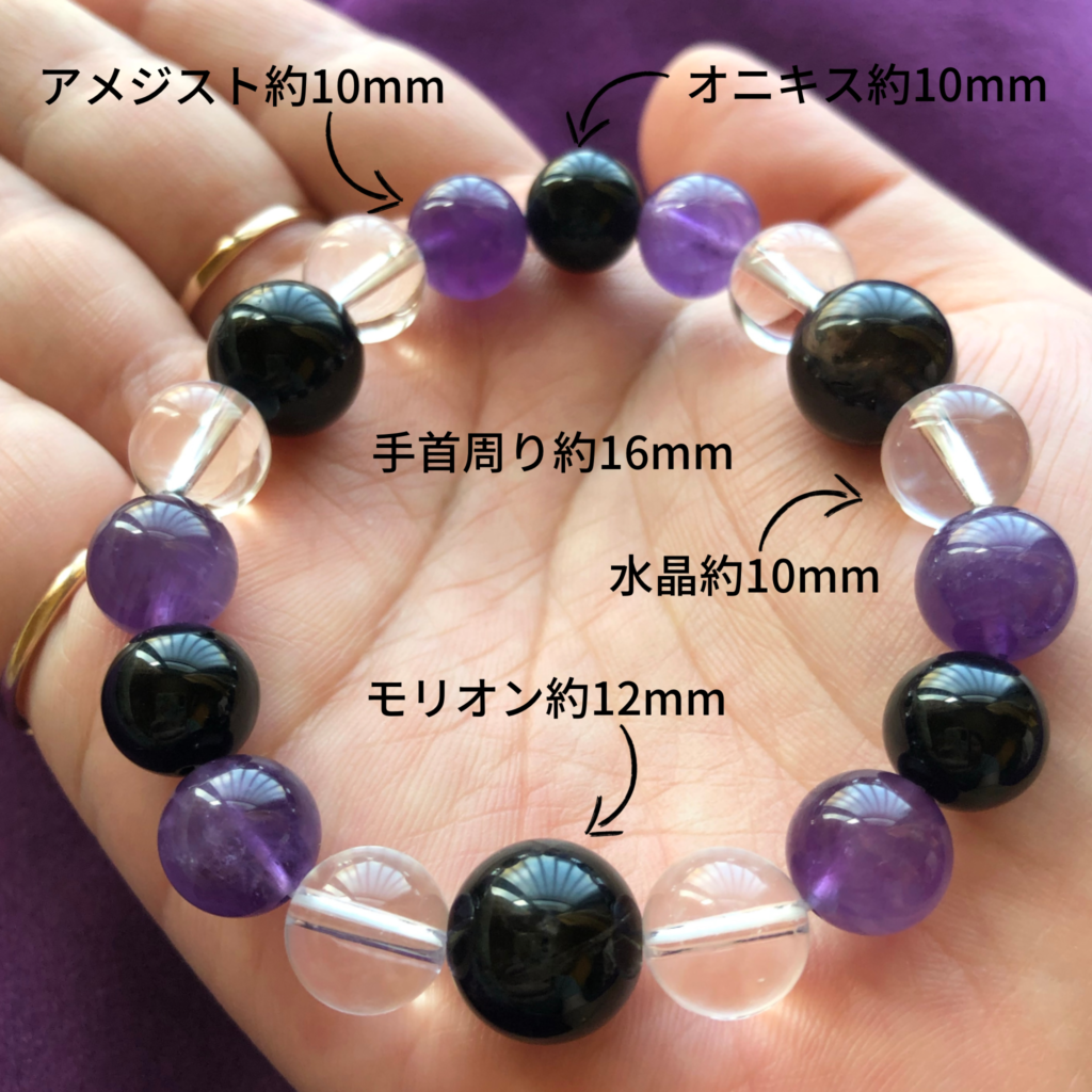 降魔鎮邪の石とも呼ばれるモリオンに加えて魔除けなどにも使われる石たちを組み合わせましたので、実際に人から妨害されている、見えない力に妨害されている、立て続けに良くないことが起こっている方におすすめしたいブレスレットです。