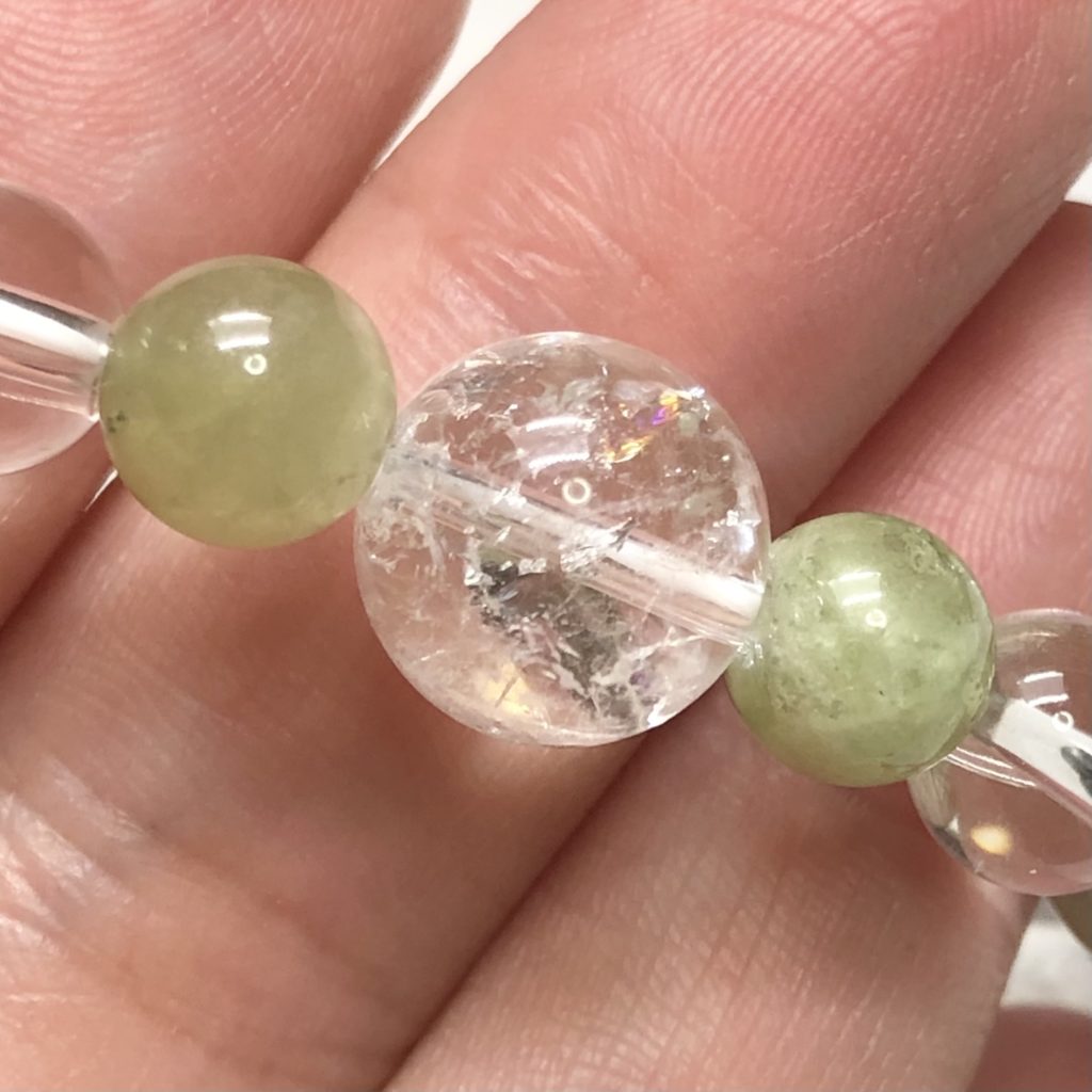 ▶︎天然アイリスクオーツ:水晶が成長するしていく中で、地中での圧力などによって亀裂が生じ、光を反射する部分が生まれ、虹色に輝く水晶に変化したものです。水晶といえば浄化、浄化といえば水晶というくらい、不要なエネルギーを清めてくれる水晶ですが、そうした水晶本来の浄化効果を更に強力にしたのが、この天然アイリスになります。「一度傷ついたからこその強さ・輝き」というメッセージが石自体に込められており、強さを与えてくれます。粘り強さとともにキラリと輝くご自身の個性を彩ってくれます。